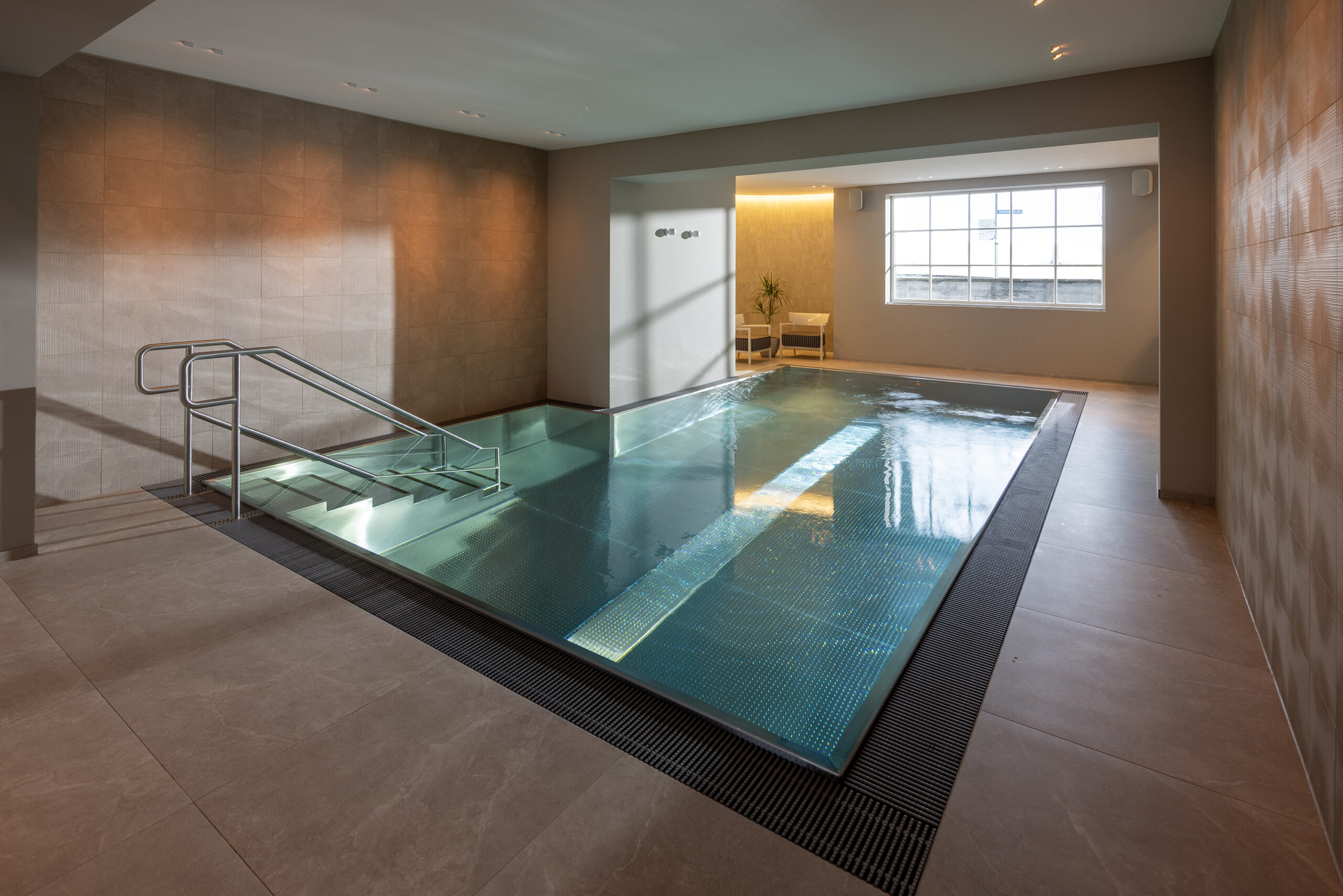 Aus der Baustelle wurde eine kleine Wellnessoase für die Hotelgäste – mit angenehmem Raumklima, moderner Technik und hochwertigem Design das zur Entspannung einlädt.